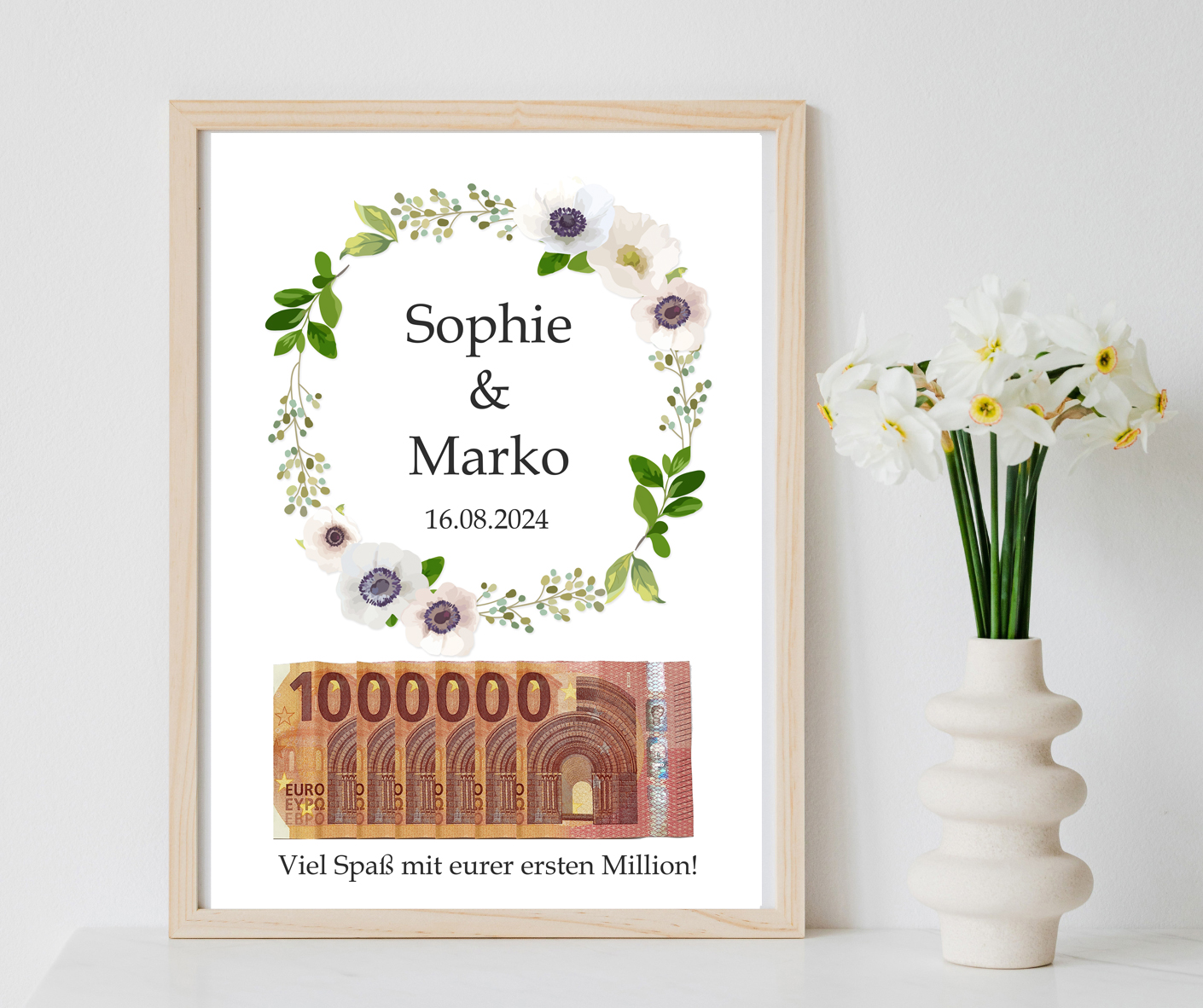 Ein personalisiertes Hochzeitsgeschenk ist immer am Schönsten! Hol Dir jetzt das schnelle Geldgeschenk für die Hochzeit Deiner Lieben und mach ihnen eine Freude mit der ersten Million!
